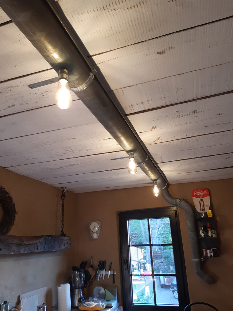 Deckenlampe aus Regenrinne
